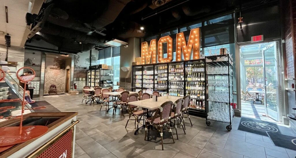 Market on Main’s exterior is modern and welcoming, with a clean façade that draws attention to its prime location on Main Street. In not shying away from one of Columbia’s principal claims to fame, a “Famously Hot” sign also invites patrons to snap a moment to share on reels.