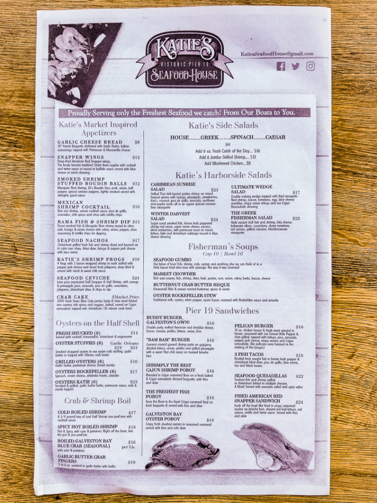 Katie's Seafood Market is located on Pier 19. The official address is 1902 Wharf Rd, Galveston TX 77550. Also, their phone number is listed in the contact.