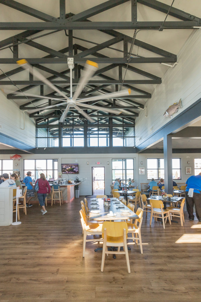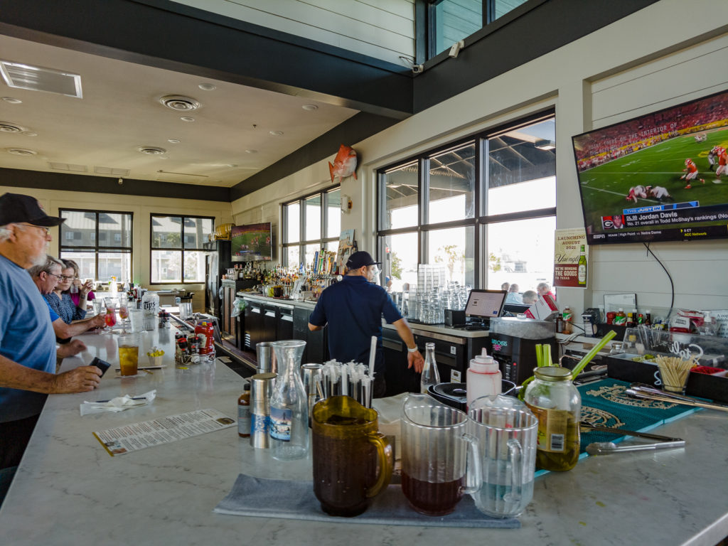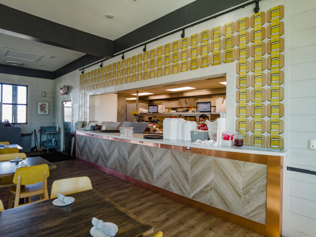 Located right on the waterfront, your dining experience here will be a treat. On colder days, you can dine indoors instead. There are plenty of seating options to choose from. Katie's interior is modern, colorful, and spacious. Cathedral ceilings are lined with gorgeous dark wood beams to give you an open feel with a striking contrast.