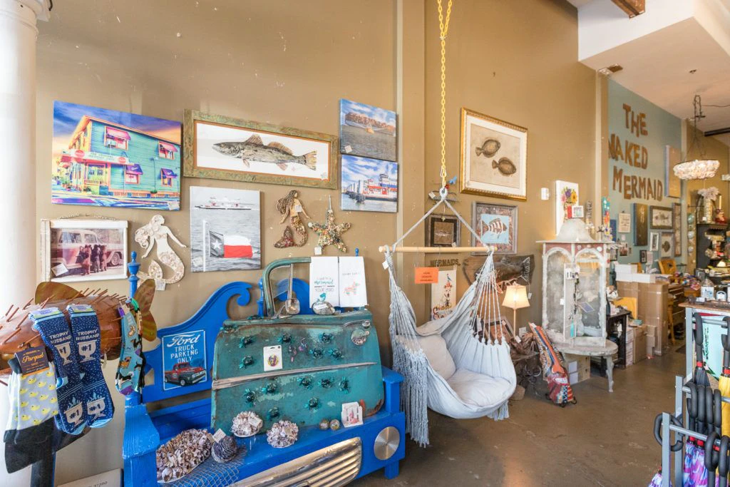 Float by the Naked Mermaid in the Arts & Entertainment District of Galveston! Established in 2011, they've been supplying customers with fun and unique items for just over a decade! You'll find plenty of antiques, local art, and eclectic decor here. Additionally, they stock gift and self care items. There's a little bit of everything at this local shop.