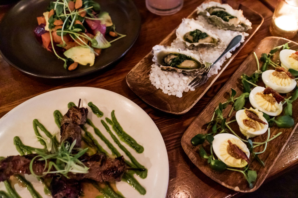 Though we usually specify which starters you've got to try - all of the appetizers at Campground are truly mouth-watering! Some popular choices include the Grilled Humboldt Bay Oysters which are sold per piece and the Deviled Eggs which come with candied bacon, garlic relish, and chives. Another must is their juicy steak skewers smothered in smoked gouda fondue and chimichurri. Lastly, the Burrata & Bread combo or artichoke dip are great for sharing.