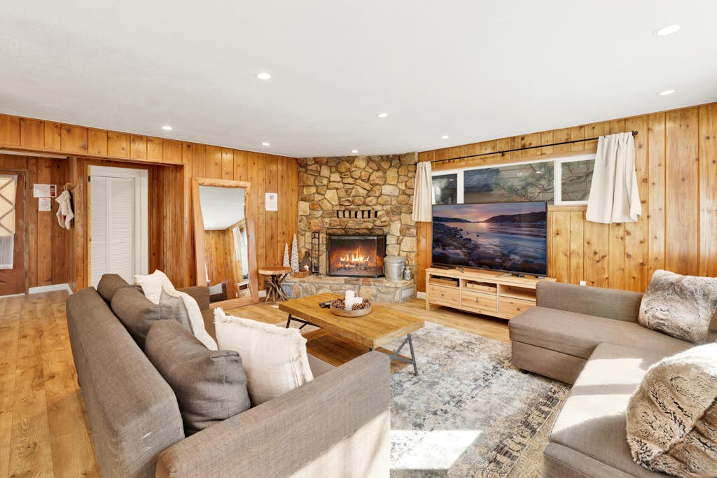 Discover Conklin Paradise Big Bear, a family-friendly, adventure-ready cabin designed for unforgettable getaways in every season. This spacious three-level home features 4 bedrooms and 4 bathrooms, offering plenty of room for families, couples, and groups to unwind. Enjoy an open-concept main level with a cozy wood-burning fireplace, a fully stocked kitchen, and a large dining area perfect for shared meals and game nights.