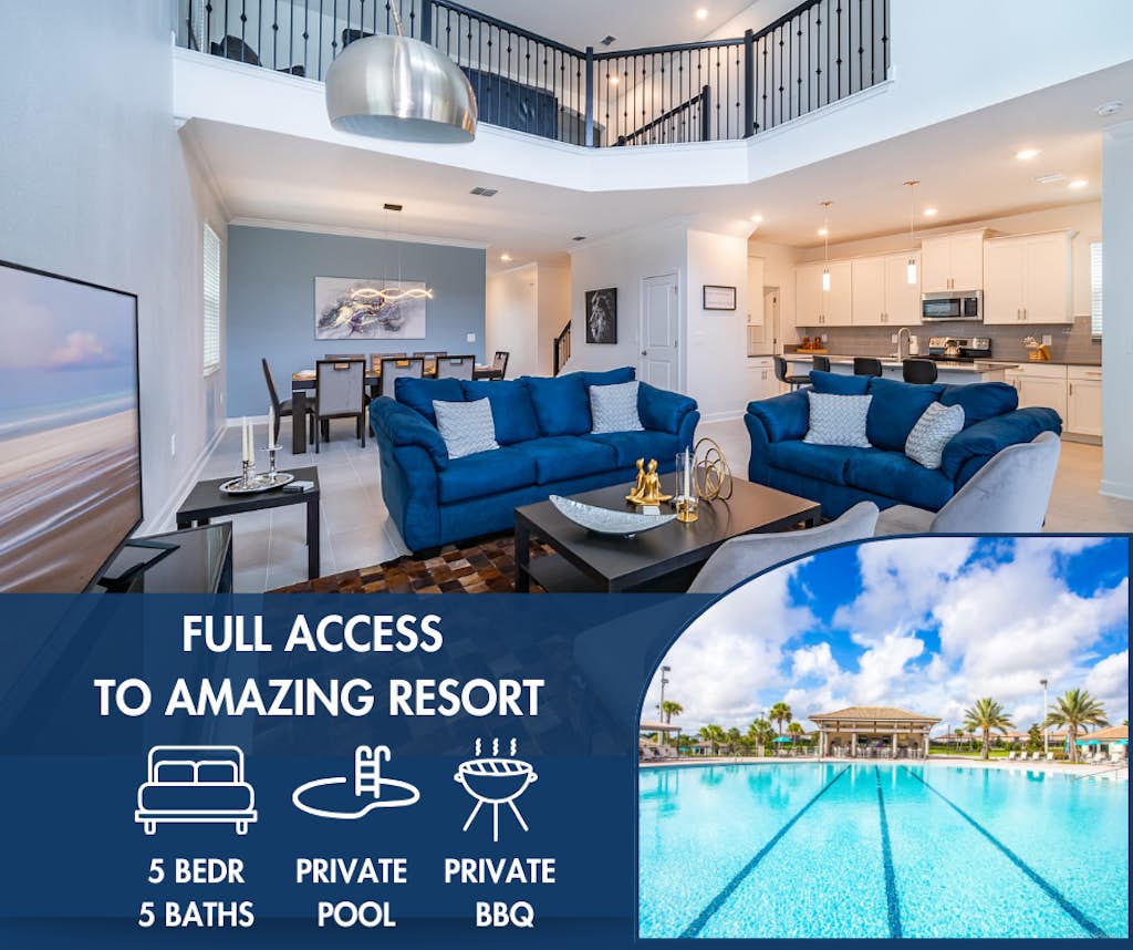 Just 20 minutes from Disney, this modern getaway offers everything you need for the perfect family vacation. Unwind in your private pool and spa, cook with ease in the fully equipped kitchen, and stay connected with fast WiFi. Enjoy access to incredible resort-style amenities including water slides, a lazy river, fitness center, and more. Pet-friendly and thoughtfully designed for comfort, it's the ideal escape for large families or groups!
