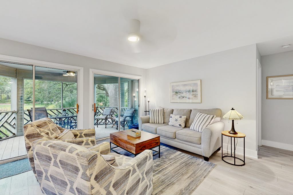 Looking for a family-friendly waterfront home for your next vacation? Look no further than this splendid first-floor getaway - beautifully landscaped with full views of a lovely lagoon. You’re just a few minutes’ walk to the outstanding Turtle Point Golf Course, where you can play leisurely rounds on scenic fairways. The vibrant Sanctuary, East Beach Tennis Center, and the pristine Kiawah Beach are all within easy walking distance by crossing the wooden bridge. Enjoy biking along the island’s network of trails that highlight breathtaking views of Kiawah, or play a friendly match on the shared tennis courts. The expansive fields of Night Heron Park nearby feature lots of fun activities and playgrounds for the kids. After you've spent a day among Kiawah’s myriad of attractions or exploring historic Charleston, step in through the front door to find a wonderfully sun-filled and inviting living area with plenty of space for you and your loved ones. You'll have no problem relaxing in this contemporary, updated villa, complete with sleek countertops and floors, bathrooms with large walk-in showers, and laid-back swivel chairs to watch the Samsung Smart TVs (located in the living area and primary bedroom). If you and your guests get hungry, the well-equipped kitchen hosts the latest appliances ideal for cooking up elaborate dinners or effortless snacks. Nestled by the lagoon's edge, unwind on the screened deck with cold drinks, basking in the serene nature views and soothing sea sounds on a warm day. Indoors or out, there's something for everyone at this beautiful South Carolina Lowcountry getaway! Things to Know Check-in time: 4:00 p.m. Check-out time: 10:00 a.m. All guests shall abide by the good neighbor policy and shall not engage in illegal activity. Quiet hours are from 10:00 p.m. to 8:00 a.m. No smoking is permitted anywhere on the premises. This rental is located on floor one, with seven entryway steps to the door. City/town permit number:RBL23-000059