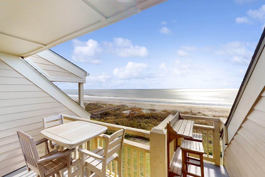 A focal point of the condo is the oceanfront balcony where you can sit any time of day and watch the waves crash, the dolphins play, and the seagulls fly. Additional exterior perks include a convenient ground-level storage closet with six beach chairs, two boogie boards, a skimmer-board, and two umbrellas. Sand toys and beach games for the kids are included in the closet, too. An outdoor shower and foot hose are available to wash off the sand after a fun day spent on the beach or in the community's pool.