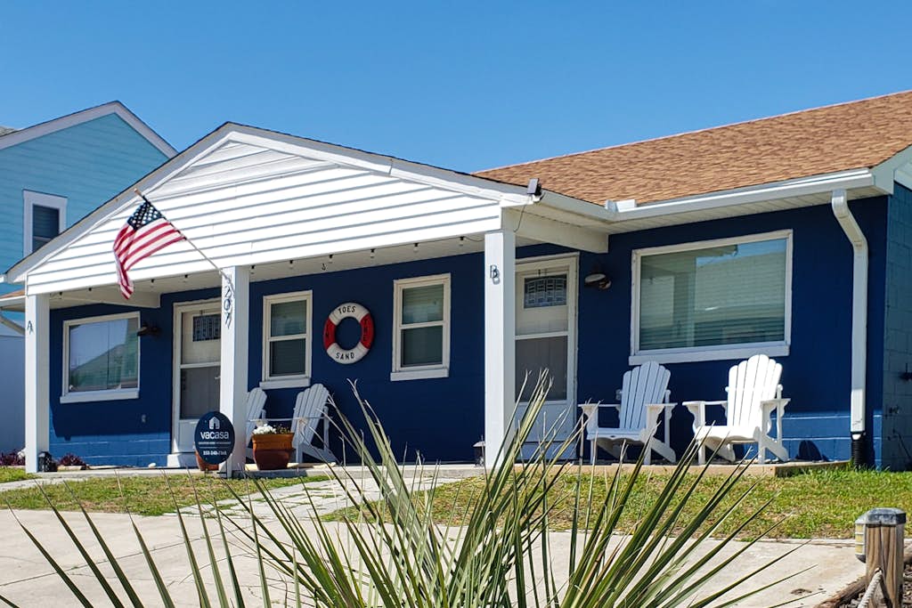 The Toes in the Sand Duplex brings you all the modern comforts of home. This two-bedroom vacation rental is located just a short jaunt to the beach where you can soak in the sun, build your favorite sandcastle, ride the waves, or all of the above! This cozy, little cottage makes for the perfect getaway. Pack up your suitcase, your smile, and don't forget to bring along the two family dogs as this beach cottage also includes a fenced-in backyard, perfect for kids and dogs!