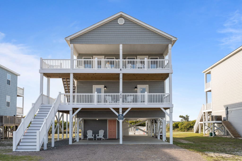 Welcome to your perfect coastal escape, where every bedroom offers stunning water views and direct access to its own private deck. This beautifully updated beach home blends comfort, style, and convenience, creating the ideal setting for families and groups looking to relax just steps from the shore. Inside, you'll find a spacious, thoughtfully designed layout featuring all-new hardwood laminate flooring throughoutβno carpet anywhereβmaking it both modern and easy to maintain after long beach days. The living room has been refreshed with new furniture, providing a cozy space to gather, unwind, and stream your favorite shows on one of the seven Smart TVs available throughout the home.