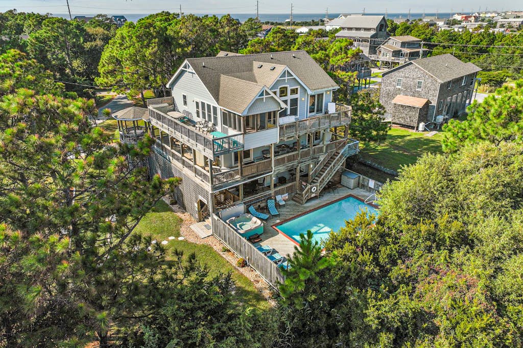 With easy beach access, a private pool, hot tub, charcoal grill, game room, and multiple outdoor entertainment areas, this charming Waves NC vacation rental is the perfect place to create lasting family memories.