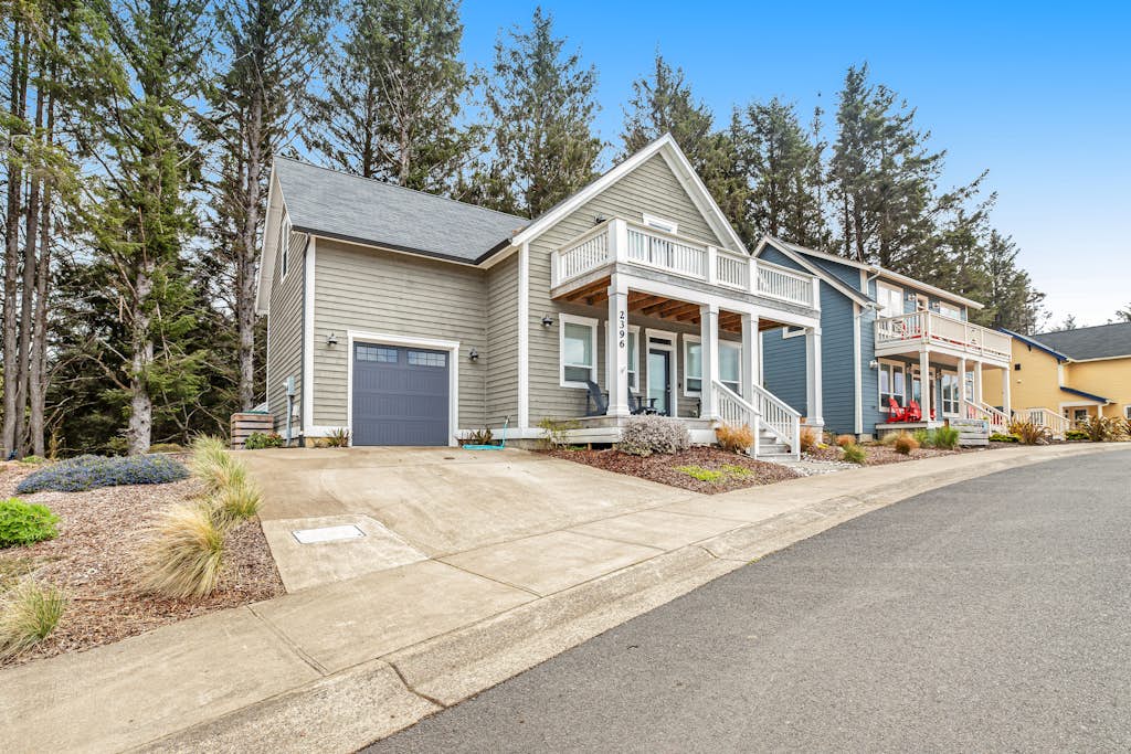 This stunning home in Lincoln City is waiting for you to set out on your next beach getaway. Sit on the front porch, or the upper deck, and enjoy beautiful views of the town and nearby ocean. Inside, the atmosphere is peaceful and airy. The hues of blue throughout the home mimic that of the blue ocean beyond. And the shiplap walls tie together the subtle beach theme of the house. In the living room, kick back on the sofa and relax after a full day spent exploring the town and visiting the beach. When you’re not out enjoying all the local dining Lincoln City has to offer, take advantage of the spacious full kitchen to prepare your meals. This home also has an additional family room, complete with a TV, sofa and loveseat, making it the perfect place for a movie night. A washer/dryer is also available for your convenience. You can see and hear the ocean from both the front porch and top deck, and you'll find lovely forest trails accessible right from the back deck! THINGS TO KNOW