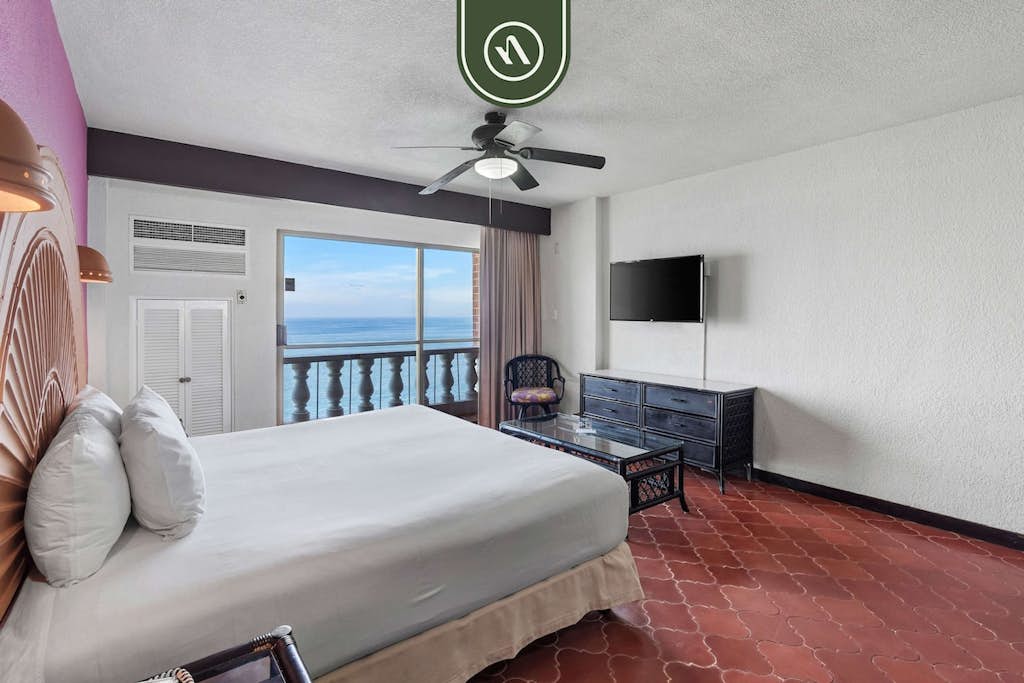 The studio is fully equipped with a kitchenette, air conditioning, and a ceiling fan, ensuring comfort throughout your stay. The complex boasts fantastic amenities such as two outdoor pools, a beachfront restaurant, bars, and a spa for your relaxation. For those looking to unwind, the private lagoon and beachfront are ideal spots for swimming, while the resort's boutique offers a unique shopping experience. Guests can enjoy a daily activity program and easy access to nearby attractions like Playa Los Muertos, the Zona Romantica, and Los Arcos National Marine Park—all just a short drive away.