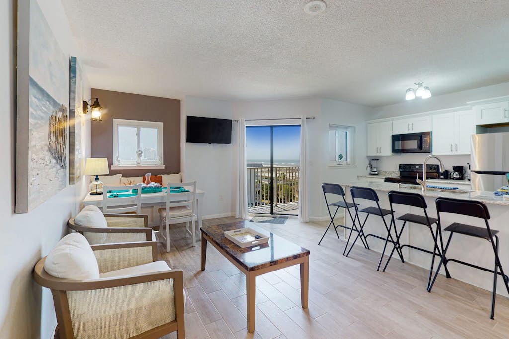 Condo is situated close to beach with a nice view from balcony. Liked the little kitchen nook. The space is used well and perfect for two people although you can sleep more. If you want to be in the middle of all the restaurants and activities, expect to drive 15-20 minutes.