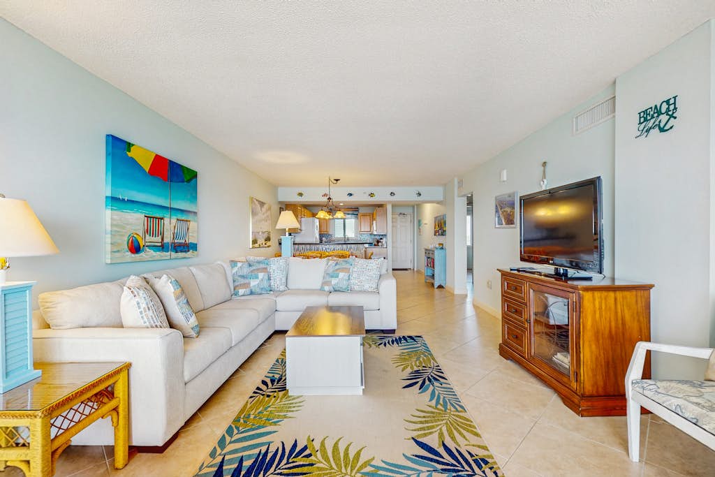 Welcome to your spacious yet cozy seventh-floor escape, perfectly situated along the Gulf and just three miles from beautiful Perdido Key State Park. This thoughtfully designed retreat features comfortable furnishings, stylish décor, modern electronics and appliances, and upscale touches throughout. Gather in the bright, inviting living area with plenty of room for everyone to unwind. Large sliding glass doors open to an expansive covered balcony where you can savor your morning coffee with sunrise views over the Gulf or enjoy a peaceful dinner under the stars while listening to the soothing sound of the waves. After a fun-filled day at the beach, retreat to one of three beautifully appointed bedrooms. Each room offers plush bedding, high-thread-count linens, and a relaxing atmosphere to ensure a restorative night’s sleep during your well-deserved getaway. As a guest, you’ll also enjoy access to a wonderful selection of shared amenities, including a sparkling swimming pool, hot tub, fitness center, and tennis court — everything you need for a memorable and rejuvenating coastal vacation.