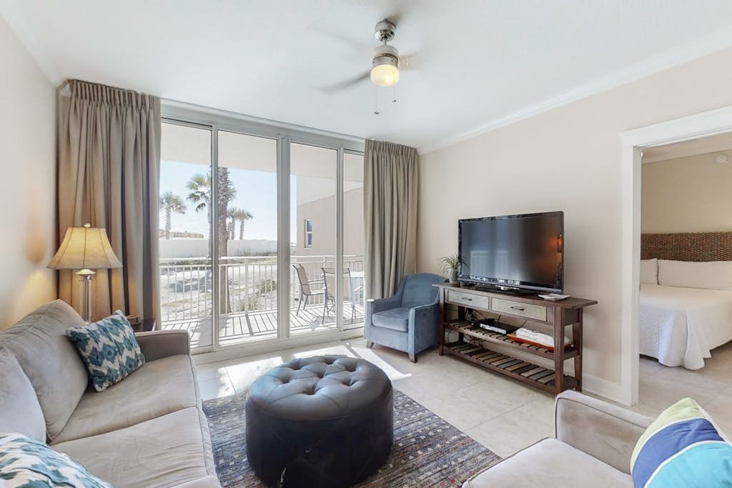 Waterscape's A105 is stylishly decorated in tropical blues, reds, and greens, and is adorned with colorful accents and artwork. The open floor plan of this home allows every room to lead onto a spacious patio with outdoor seating. The condo's kitchen is well appointed with granite countertops, stainless steel appliances, and beautifully tiled floors. All dishes, cooking utensils, and bake ware are provided to complete and serve meals. The dining area has a large table. This beautiful home offers a twin bunk area for extra accommodations. The open living room houses a queen sofa bed, TV, and DVD player. There is a half bathroom located off of the main living area near the bunk room. The primary bedroom and guest bedroom feature a king bed, private bath with stand up shower and garden tub, TV, and DVD player. Things to Know Beach service is included from March to October. All registered guests staying at Waterscape will be required to wear the RFID wristbands provided. These wristbands are mandatory for access to all Waterscape amenities. Please note: ● Wristbands must be worn at all times when using the amenities. ● Guests without wristbands will not be permitted access. ● Wristbands are provided only for the number of registered guests and cannot exceed the unit’s maximum occupancy, all occupants count toward max occupancy regardless of age ● Guests must provide the exact number of occupants in order to receive the correct amount of wristbands for their stay ● A $50 non-refundable fee per wristband will be charged if any are lost or not returned at checkout. ● Children 5 and under are not required to wear the wristbands ● Wristbands are not required for beach access We appreciate your understanding and cooperation as we implement this new system to enhance security and guest experience at Waterscape. If you have any questions before or during your stay, feel free to reach out