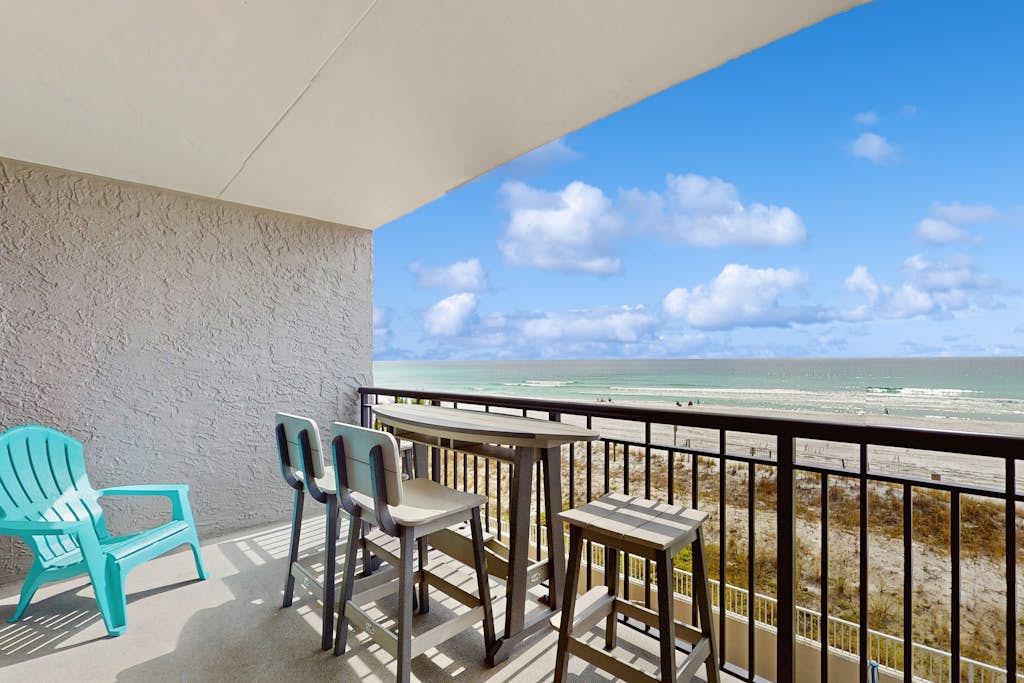 This beautiful Gulf-front vacation rental includes patio doors in the living room leading to a private balcony that provides a spectacular view of the Gulf of Mexico. Pickleball courts are also nearby, so grab your paddles and have a friendly game together. Other features of this upgraded, tropical island style vacation rental include a full-size refrigerator, cooktop stove, and oven, microwave, and dishwasher, along with all the dishes, pots and utensils needed to prepare and serve meals. The bathroom includes a tub and a vanity, light fixture and cabinets. The living room and bedroom both have a TV. Things to Know Complimentary beach service of one umbrella and two chairs is offered from March 1 through October 31. Paddleboards, kayaks, and bicycles are available for an additional charge.
