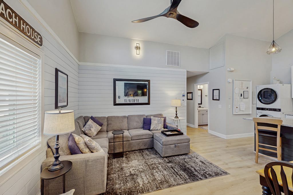 Find yourself across the street from the sugar-white sand of the Gulf of Mexico and make the most of your next family getaway in this bright home away from home! Upon arriving, you will immediately notice the open layout of the living area and kitchen that will make entertaining the whole group a breeze. Whip up anything from a poolside snack to a gourmet meal with ease with all of the appliances of home. Other useful amenities include a dedicated workspace, steamer, and dog crate. Bathroom amenities include hairdryer and curling iron. Plus, a quick load of sandy suits can be a breeze with the private washer and dryer so accessible. When the day heats up, the beach will be a perfect place to soak up some rays, yet the shared pool can be just the ticket for escaping the heat or watching the kids splash as you read the new novel you have been meaning to get around to. When nights come to a close, play a favorite movie on the TV and drift off to sweet dreams of more beach fun ahead. Sitting in the heart of St. George Island, there will be no delay in packing days full of coastal adventures. The beach will be at your fingertips regardless of where you choose to venture on the island, yet there is much more to see and do. Head over to the St. George Island Lighthouse (one mile away) for a bit of sightseeing and pop into one of the local eateries and boutiques while in the area. If you are feeling extra adventurous, try your luck at catching a big one on a fishing charter! Things to Know Check-in time: 4:00 p.m. Check-out time: 10:00 a.m. All guests shall abide by the good neighbor policy and shall not engage in illegal activity. Quiet hours are from 10:00 p.m. to 8:00 a.m. No smoking is permitted anywhere on the premises.