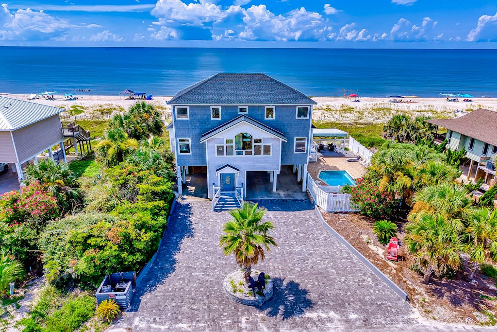 This Gulf-front home with direct beach access, Gulf views, yard, & deck is described as a beautiful, spacious, and well-designed retreat that works especially well for families, large groups, children, and pets. Guests praised the comfortable beds, generously sized bedrooms, private bathrooms, quality furnishings, open layout, and well-stocked kitchen, along with thoughtful extras like the upstairs kitchenette area, beverage fridge, ice maker, laundry space, desk, and monitor setup. The home was frequently noted as very clean and well maintained, with attractive indoor and outdoor furnishings that felt fresh and inviting. Its Gulf-front setting offers easy beach access, a private beach path and boardwalk, plenty of parking, and a quiet yet convenient island location. Reviewers repeatedly highlighted the breathtaking Gulf views from bedrooms, decks, and living spaces, as well as the relaxing sunsets, stargazing, and oceanfront atmosphere. Standout amenities include the fenced grassy yard, private pool, hot tub, covered pavilion or gazebo, multiple decks and porches, outdoor seating, gas grill, fire pit, fast internet, and pet-friendly features that make the property especially memorable.
