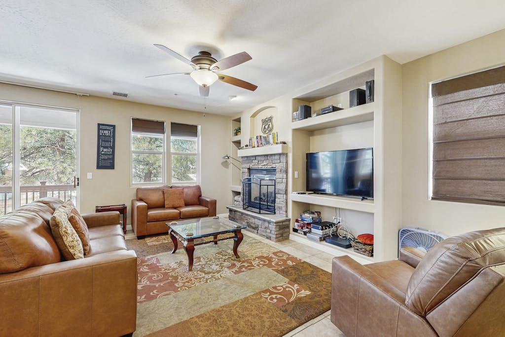 Book today and bring your family close to the trails at this large Flagstaff home. With plenty of space for everyone (including your lovely family dog), you can spread out easily throughout the house.