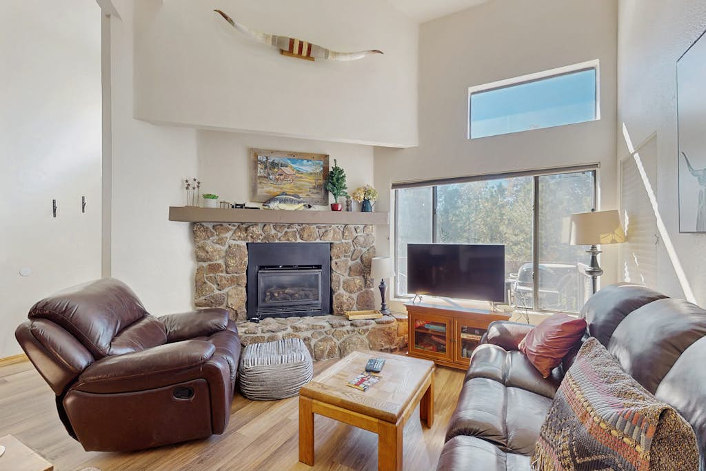 Tucked into the pines and surrounded by green space, this serene corner-unit townhome is ideal for a long-term stay in Flagstaff. Outdoor highlights include a large back balcony with a quiet, tree-lined view, and a huge front patio.