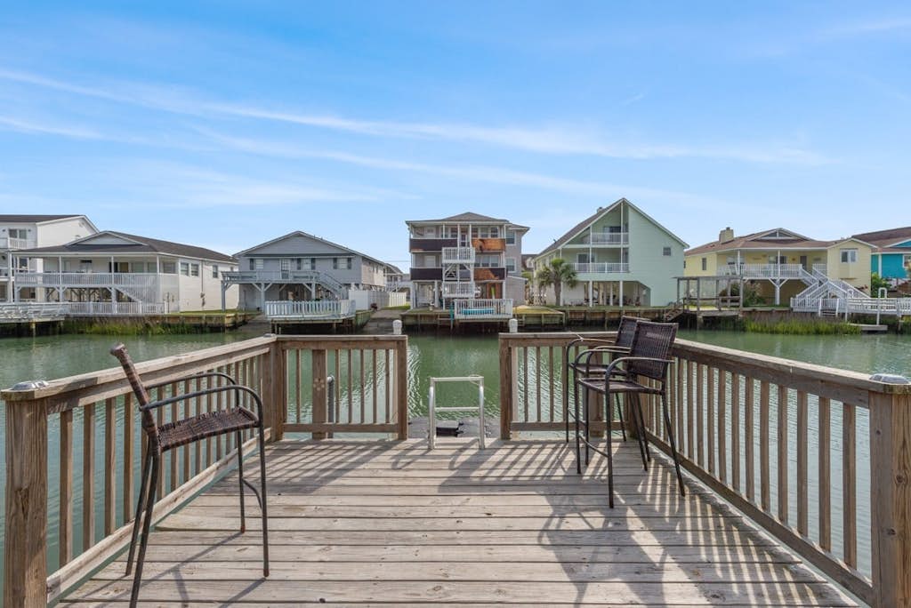 Natural light fills the home through large windows and sliding glass doors that lead out to the private oversized deck. The deck offers plenty of seating and a slightly elevated view of the inlet, making it a wonderful place to relax and watch boats drift by. Guests who enjoy being on the water can even bring their own kayak and explore the inlet.