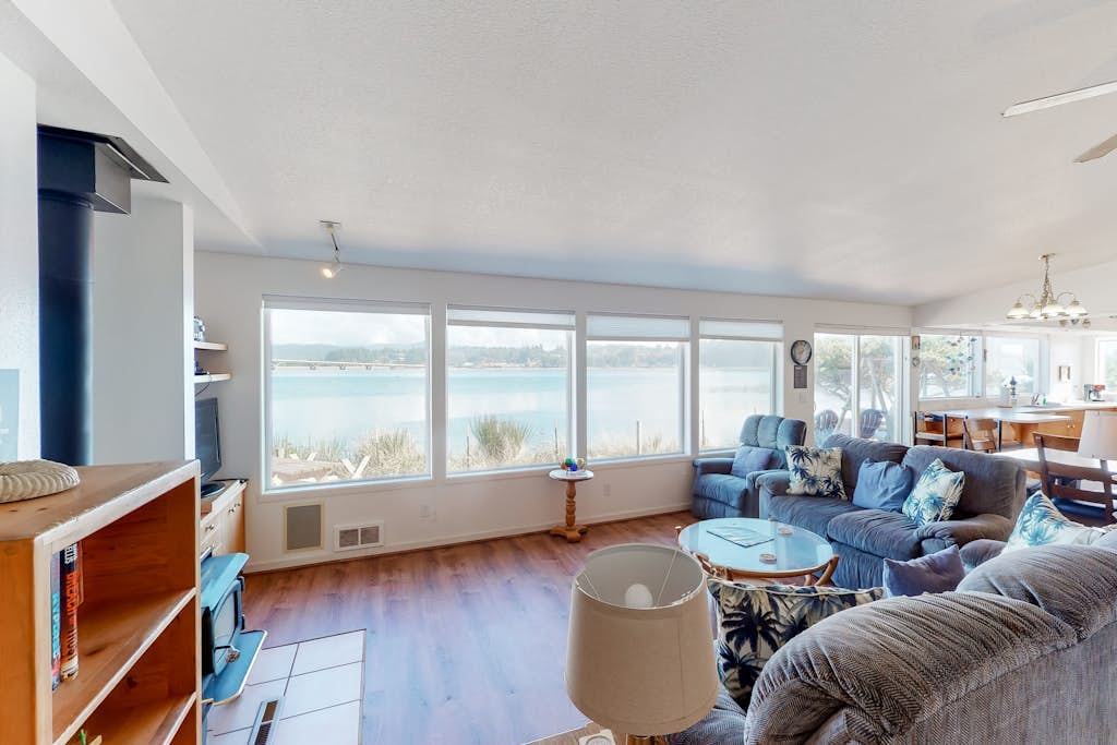 Come to Waldport for your next Oregon Coast vacation and stay in this charming bayfront home. This home is even dog-friendly, so you can bring your favorite canine family members along as well!