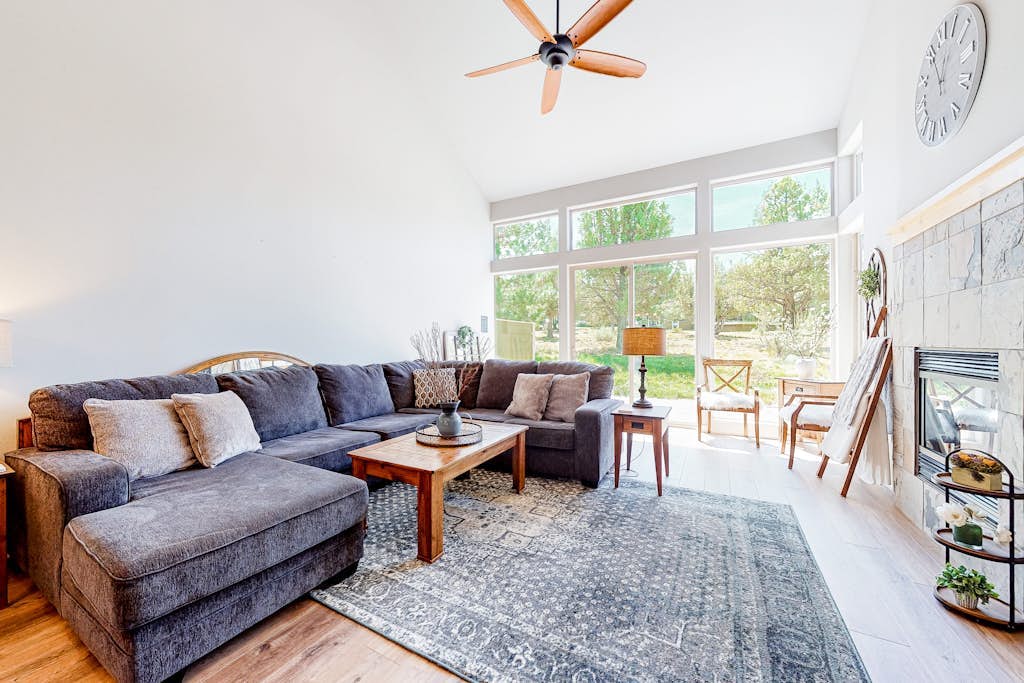 Open, bright, and airy, this neighborhood home brings the style to your stay in Eagle Crest. Take time to relax in front of the gas fireplace after your travels - or head straight to the private hot tub for a soak! Central air conditioning and a ceiling fan in each bedroom will keep the High Desert outside. There's plenty of spots for guests to relax with a book or a game of chess, and there's room on the long sectional couch for everyone. If someone needs to finish some remote work, there's a desk workspace all set up near the dining area. Of course, you'll all enjoy cooking together in the full kitchen set up with full-size appliances. In addition to everything at this comfortable home, guests can enjoy access to shared amenities, including a shared pool, sauna, tennis court, and basketball court. You'll be all set during your stay at this home. Nearby Services and Dining Options