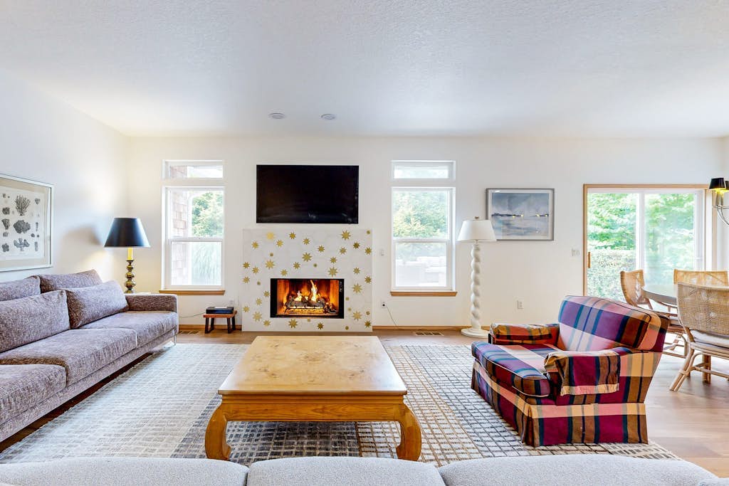 Welcome to your home away from home in beautiful Gearhart, Oregon! This charming and cozy family beach house offers the perfect blend of privacy, comfort, and modern amenities to make your coastal getaway unforgettable. Highlights of Our Beach House: Newly Updated Great Room: Step into a bright and inviting freshly painted space with new hardwood floors and brand new extra deep sofas, perfect for relaxing after a day at the beach, a day at the golf course, hiking, or exploring Haystack rock 20 minutes away or antiquing in Astoria, just 25 minutes down the road. Enjoy your favorite shows on the new 65-inch Samsung TV using your own streaming passwords. Gather around the newly refurbished gas fireplace for a friendly evening of games and conversation. Spacious Deck & Outdoor Living: Unwind on the spacious deck with new outdoor sectional furniture, surrounded by lush evergreen landscaping that ensures your privacy. Fire up the propane gas grill or gather around the fire pit for evening marshmallow roasting and star gazing. Grill utensils and long-handled forks make that easy to do! Dine al fresco at the large teak dining table. Or enjoy morning coffee on the front porch. Don’t be surprised to find a member of the nearby Roosevelt Ek herd sauntering by. Modern Kitchen & Coffee Bar: The newly refurbished and fully stocked kitchen features a dishwasher, fridge, microwave, coffee maker, and updated soft-close cabinets. Make delicious meals together with a full array of stainless steel pots and pans, mixer, blender, slow cooker, serving platters, and full sets of silverware and dishes. Start your day at the new coffee bar, adorned with charming V-groove wood paneling and beadboard. Comfortable Bedrooms & Cozy Den: Find plenty of space for family and friends in the great room, then retreat to inviting private bedrooms on both the first and second floors. Curl up with a good book in the cozy den on the first floor. Or gather to play games on the overstuffed furniture in the welcoming seating area on the second floor. Convenient Beach Access: Enjoy a leisurely 10-minute walk to beautiful Gearhart beach, or take advantage of the drive-on beach access. Prime Location: Our house is on a quiet cul de sac, away from the hustle and bustle. It’s located just minutes away from the charming shops and cafes of Gearhart and across the golf course from the popular McMenamims restauarant, the Sand Trap. You'll have easy access to great dining and entertainment options. This beach house is perfect for family gatherings, friends' getaways, or a peaceful retreat. Create lasting memories in this serene coastal haven. Book your stay today and experience the best of Gearhart, Oregon! Nearby Services and Dining Options