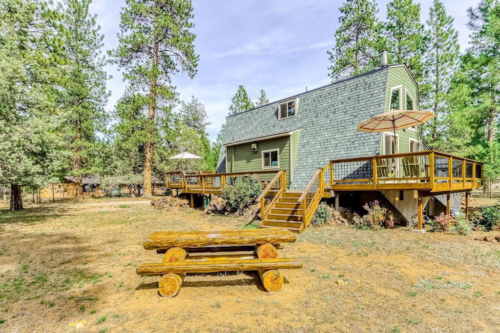 Treat yourself to that long-awaited getaway and make this adorable, lofted cabin home for a while! This retreat is part of the Tollgate community. Sisters is a small Oregon town, and this home perfectly captures the quaint vibes that will help all of your worries slip away. Each morning can start on a peaceful note with a fresh cup of coffee on the deck, and family cookouts are easy on the gas grill. The interior of this getaway is a dream, with a wood stove, wood paneling, and classic mountain decor. Step into the full kitchen when mealtimes come around and take advantage of the modern stainless steel appliances and all of the tools needed to whip up tasty recipes. Not to mention, the shared pool and tennis courts will let everyone soak up the sunshine in their own way. This retreat also features a loft bedroom that is actually a main suite. The third bedroom is a transitional room that serves as a family room but can be converted into a bedroom by sliding the barn doors for privacy and there are two sleeper sofas in there. Sitting just three miles from the heart of Sisters, you will have a perfect sense of peaceful seclusion while still being close to shopping, dining, cafes, and grocery stores to fill all of your vacation needs. Outdoor adventures including hiking and biking are great ways to make the most of the fresh air. You can go bicycling on known trails like Peterson Ridge Loop Mountain bike trail, which is 25 miles long. You can also enjoy outdoor water activities at McKenzie River, Sutler Lake, and Camp Sherman. Plus, you can easily venture out to Redmond or Bend for a change of scenery and more exciting city attractions!