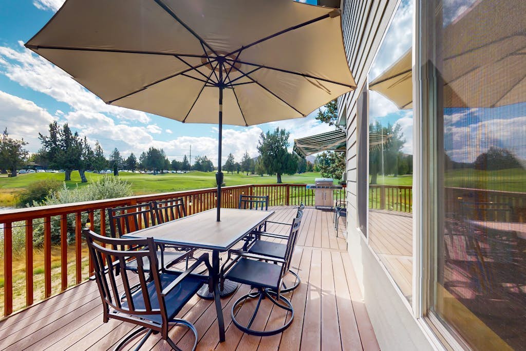 This beautiful townhome just north of Bend, Oregon, is the perfect getaway you've been looking for. Located in the coveted Eagle Crest Resort, this location has all the amenities to keep you entertained: a tennis court, a sauna, pools, a hot tub, and a fitness area. Explore the breathtaking Pacific North West by hiking the unique national forests, fishing in the streams, biking the nature trails, or seeing the sights while horseback riding. The Ridge Sports Center, a brief 0.6 miles away, offers plenty of added fun, and you'll be right on the Ridge Course's ninth green, so it will be easy to get some rounds in. The driving range and Eagle Ridge Golf Pro Shop are a quick walk away or bring your skis and experience world-class powder at Mt. Bachelor Ski Resort. Upon entry, you'll be met with a bright interior simply flooded with natural light thanks to the 180-degree view of the trees and golf green. This home boasts new paint, furnishings, and decor, all of which contribute to a fresh, pristine living space. Curl up with a good book by the stone fireplace, or watch your favorite movies on the large TV above it. Hobby chefs will love preparing grand meals and on-the-go snacks in the full kitchen, equipped with stainless steel appliances, a wine fridge, and a breakfast bar. A dedicated workspace with a desk and chair is available for remote work if you need to stay connected. With four beds, plus a sofa bed in the living room, there is more than enough room for everyone to get a comfortable night's rest from the day's adventures. Find comfort in the exquisite main bedroom, which boasts a TV for private viewing and a luxurious en suite bathroom, complete with a soaking tub and oversized walk-in shower. Enjoy spectacular sunsets on the back porch, barbecue, or small talk with your favorite drink in hand, ending the day on a perfect note.