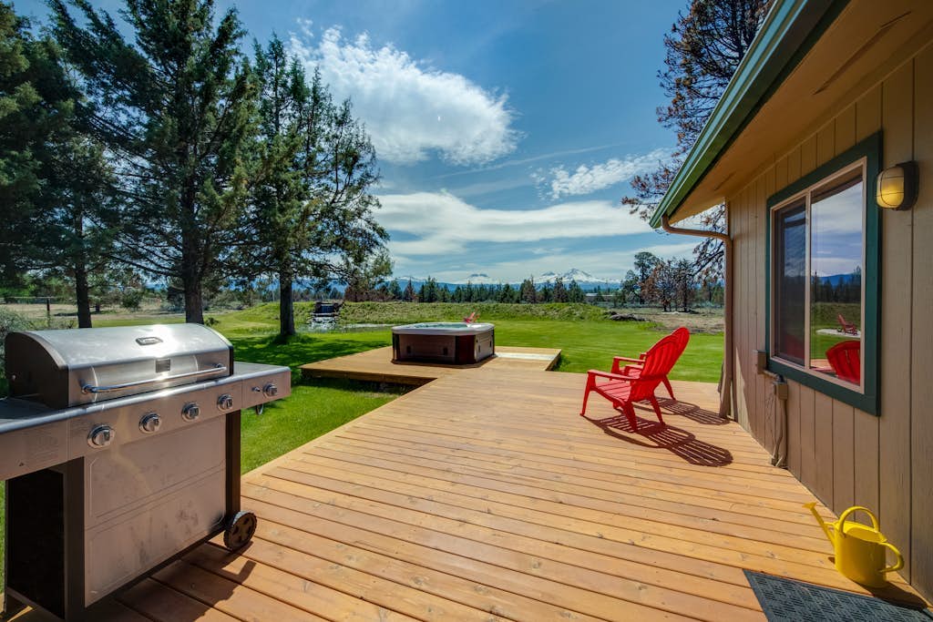 Due to the house next-door, which is not really showing in any of the pictures there is very little privacy and the lounge chairs shown at the pond which is more like a puddle we’re not provided and it states there will be at least one golf hole, which there is not there is just greens But the grass between was not groomed at all. The wiring on the speaker system for the TV and radio is poor and shut on and off if you just lately walk on the floor. You would’ve thought with the tiny golf course there would be a couple clubs and balls which there were not which is like advertising horseshoe pits, but not having horseshoes. This was our anniversary trip and upon showing up and seeing the situation, I tried to cancel, but was too late and definitely would not consider this for future rent for something like this, but the house was clean, and the view was pleasant. All in all no way near the price. Even for the town of sisters.