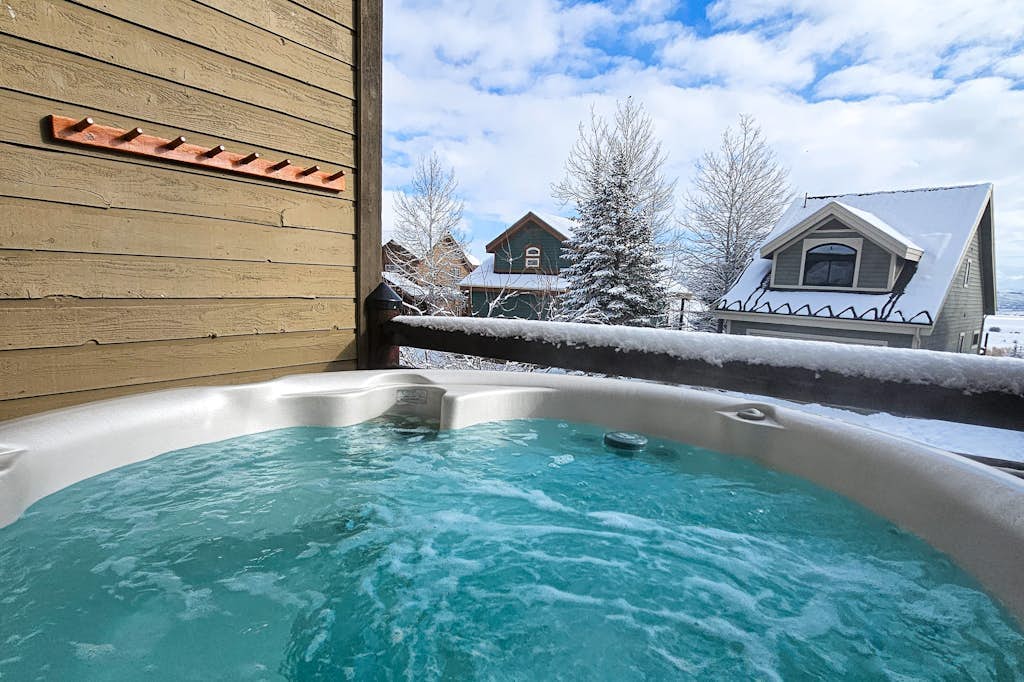 After a long day of winter sports, enjoy a soothing soak in the private, outdoor hot tub on the deck. Guests are also welcome to use the fitness center, shared pool, and hot tub at the Bear Hollow Clubhouse during their stay.