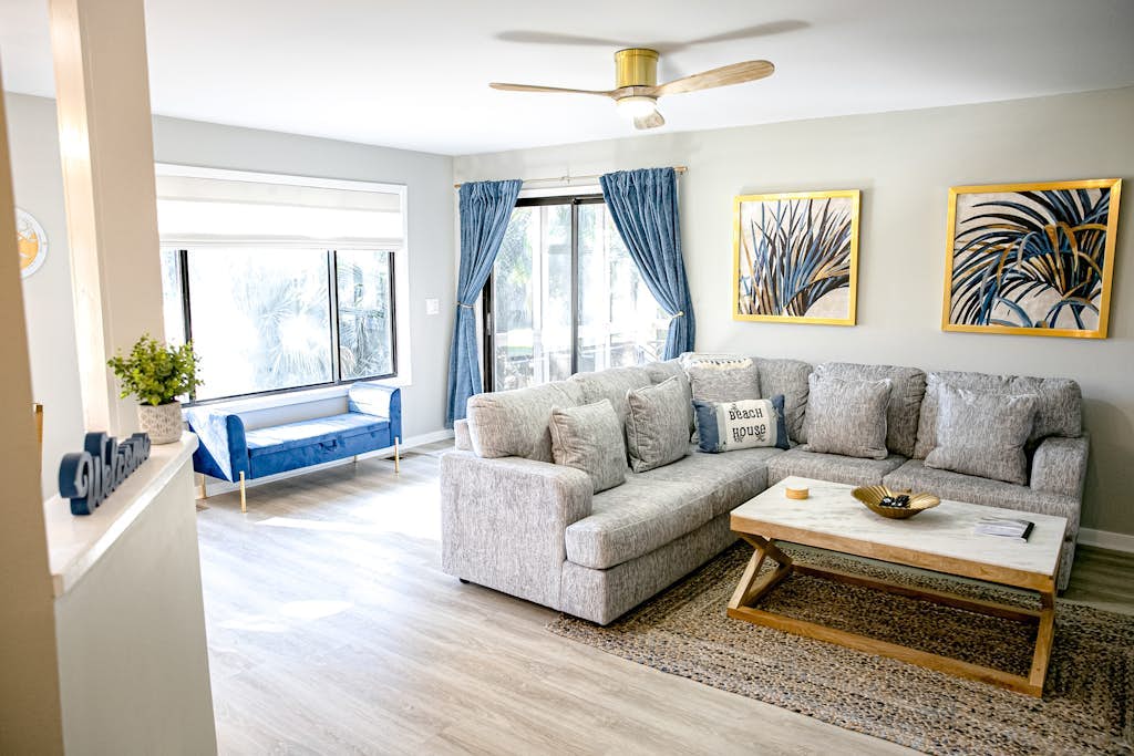 Golf course adjacent, beach-themed condo with sunroom, washer/dryer, & AC is described as a gem that feels above expectations, with a beautiful, updated design, thoughtful touches, and a layout that feels spacious, peaceful, and perfect for a relaxing getaway. Guests consistently praise the comfort of the furniture and bedding, noting very comfortable beds, great bathrooms, and a lovely screened porch that adds to the restful atmosphere. The property is repeatedly highlighted as exceptionally clean, super clean, and well maintained, with a well stocked kitchen and accommodations that had everything needed for a comfortable stay. Its location is appreciated for being quiet, secluded, and convenient to the beach, restaurants, shops, and island activities, while also offering easy enjoyment of the surrounding golf course setting. The views from the porch and windows are a standout, with relaxing scenery of the golf course, greenery, wildlife, deer, birds, and even the sound of the ocean enhancing the experience. Amenities such as the screened sunroom, beach items, washer and dryer, and air conditioning help the condo feel well equipped, comfortable, and easy to enjoy for return visits.