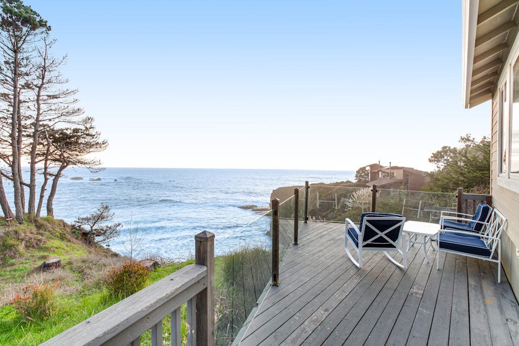 This home is wonderful. The views of the ocean from both the deck and the inside living area are beautiful. Most places have railing which obstruct the view but this had clean glass making it easy to enjoy the view. The fireplace was an added bonus and we had lots of firewood for it making for a cozy stay. I was worried before getting there about my dog due to being so close to the cliff but the deck and dog run area were very secure and I had zero worries. The bed was soft and comfortable making for a great nights sleep. The kitchen was well stocked and had everything we could have needed. All in all a wonderful place to stay!
