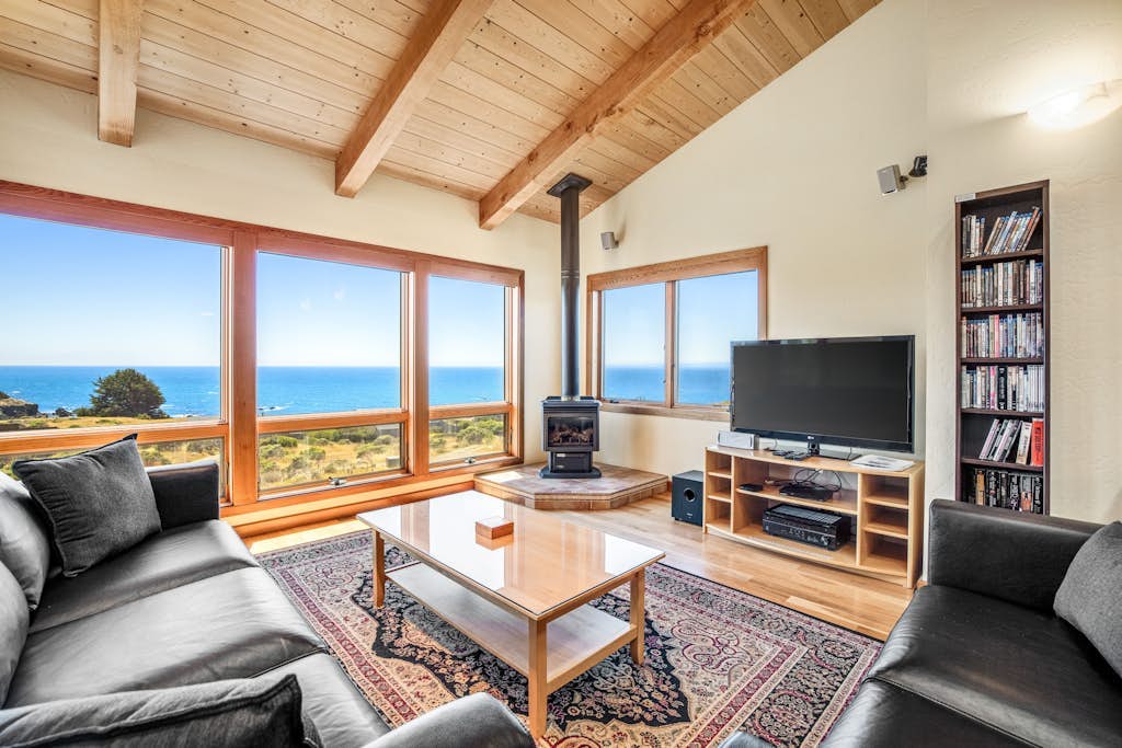 Ascona House is described as one of the best Sea Ranch rentals, offering a beautiful, relaxing, and thoughtfully appointed stay with a spacious layout that works especially well for couples, families, and small groups. The home is praised for its comfortable beds, quality linens, inviting furnishings, and open, light-filled living spaces that feel both elegant and cozy. Guests consistently highlight how spotless, well maintained, and organized Ascona House is, with everything accurately represented and ready for a stress-free stay. Its location is especially valued for easy access to nearby beaches, bluff trails, Pebble Beach, and the surrounding natural beauty, while still feeling peaceful and private. The ocean views from the living areas, bedrooms, deck, and hot tub are repeatedly described as breathtaking, spectacular, and visible from nearly every room. Guests also appreciate the exceptionally well-stocked kitchen, hot tub, grill, fireplace, entertainment setup, reliable wifi, wildlife sightings, and thoughtful extras that make return visits highly appealing.