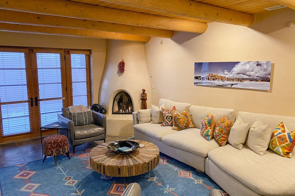 El Corazon-Steps to the Plaza is described as a lovely, beautiful, and exceptional condo that feels perfect for a Santa Fe stay. The home is praised for being comfortable and cozy, with very comfortable beds, quality linens, inviting living spaces, tasteful Southwest decor, and beautiful artwork and furnishings. Guests consistently highlight how clean, tidy, and well kept the property is. El Corazon-Steps to the Plaza is especially valued for its excellent, quiet, and secure location within easy walking distance of the Plaza, shops, restaurants, museums, and downtown attractions. The property is noted as well appointed and well equipped, with a stocked kitchen, good bath features, robes, underground parking, a gym, and a fireplace that guests enjoyed. It is also appreciated for feeling safe, family friendly, and convenient for a relaxing getaway.