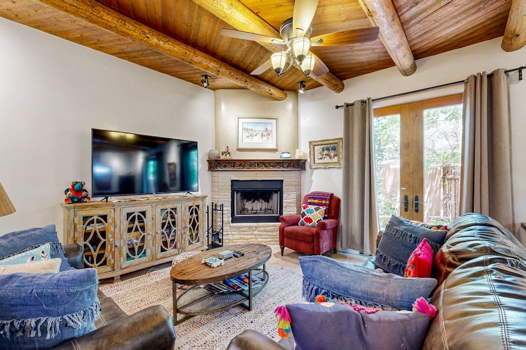 Casa Del Norte is described as a beautiful, luxurious, and exceptionally well-appointed vacation home that feels complete, spacious, and thoughtfully designed for a comfortable stay. The property is praised for its very comfortable beds, cozy bedrooms, upscale linens, inviting furnishings, and charming Santa Fe decor that creates a warm and welcoming atmosphere. Guests consistently highlight how immaculately clean, spotless, and well maintained Casa Del Norte is throughout. Its location is especially valued for being in a quiet neighborhood within easy walking distance of downtown, the plaza, restaurants, shopping, and local highlights. Outdoor spaces such as the private courtyard, patio, balcony, and outdoor seating areas are appreciated for relaxing and enjoying the surroundings. The fully equipped kitchen, high-end appliances, roomy bathrooms, fireplace, large television, garage parking, washer and dryer, games, and overall abundance of amenities make Casa Del Norte feel convenient, comfortable, and ideal for return visits.
