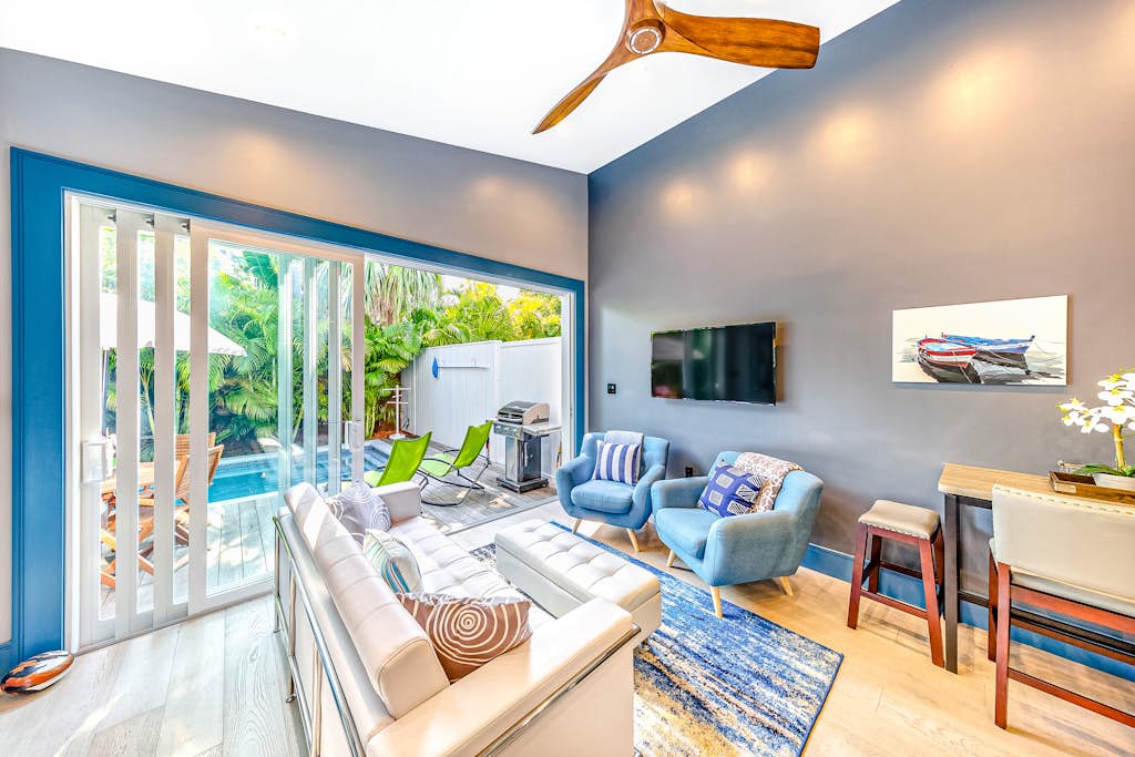 Enjoy a soak in your own private, heated saltwater pool at this lovely duplex! Part of the Tropical Vibes home, this duplex is a charming hideaway with plenty of room to hang out. Open the sizable glass sliding door to create a seamless indoor/outdoor space between the kitchen, living room, and pool deck. Grill up something tasty on the private gas grill, then finish it off with a glaze in the full, semi-open kitchen. There's enough room at the kitchen island to cook up the sides while something cooks on the range! Set up at the dining or the poolside table, and you can arrange a whole table with the provided flatware and glassware. When you're ready to wind down, just adjust the central air conditioning and slip into quilt bedding that reflects the bright-yet-homey vibes of Key West. Each bedroom features its own mounted TV and en suite bathroom. After all, getting ready in the morning is way more fun with a tiled standalone shower and a selfie-friendly illuminated mirror. The tile work also extends to the walls for a truly relaxing space. You'll be inspired by all the artistic touches of this home - it's only natural for the southernmost town of the continental US! What's nearby: If you're looking to head straight to the beach, Higgs Beach is half a mile away! The Southernmost Point of the continental United States is just over a half-mile away - take a picture and then enjoy some conch fritters at the Southernmost Beach Cafe. Take in a bit of history at the Ernest Hemingway Home and Museum, just under one mile from the duplex. But if you're looking for a different kind of escape less than one mile away, take a walk through a sanctuary of colorful birds and over 50 species of butterflies at the Key West Butterfly & Nature Conservatory. Things to know: Two twin beds can be pushed together to form a king-sized bed as seen in the photos Snowbird-friendly Luggage dropoff allowed Step-free access to the common area Guests must stay for a minimum of 28 nights Beach towels are available for guest use *Island Retreat and Island Hideaway are smaller properties within Tropical Vibes, each with their own private pool. They can be rented separately or together This property is managed by Vacasa Florida LLC. You must be 25 years or older to rent this property.