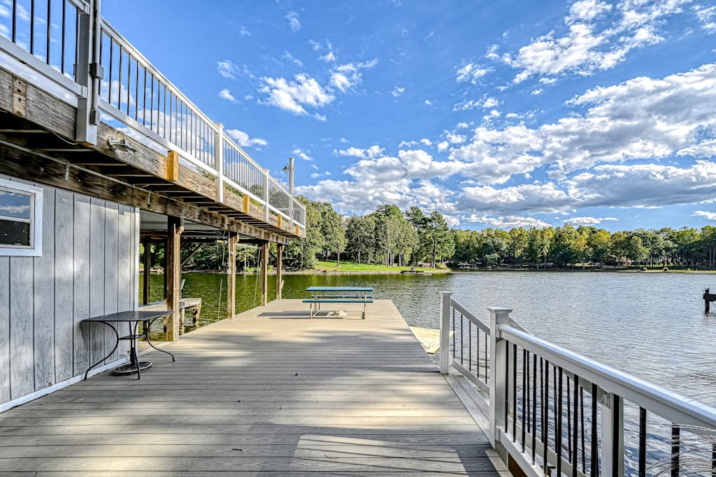 We enjoyed our stay at No Wake Zone. The house was clean, comfortable and spacious, the dock area was well maintained and even provided kayaks and a floating water pad for our enjoyment. We have stayed here a few times and the recent upgrades (new fire pit, deck/dock chairs, cover on couch to name a few) were appreciated. We made use of the fire pit, horseshoe pit and the large back yard for s'mores and games and the long front driveway for dog walks.