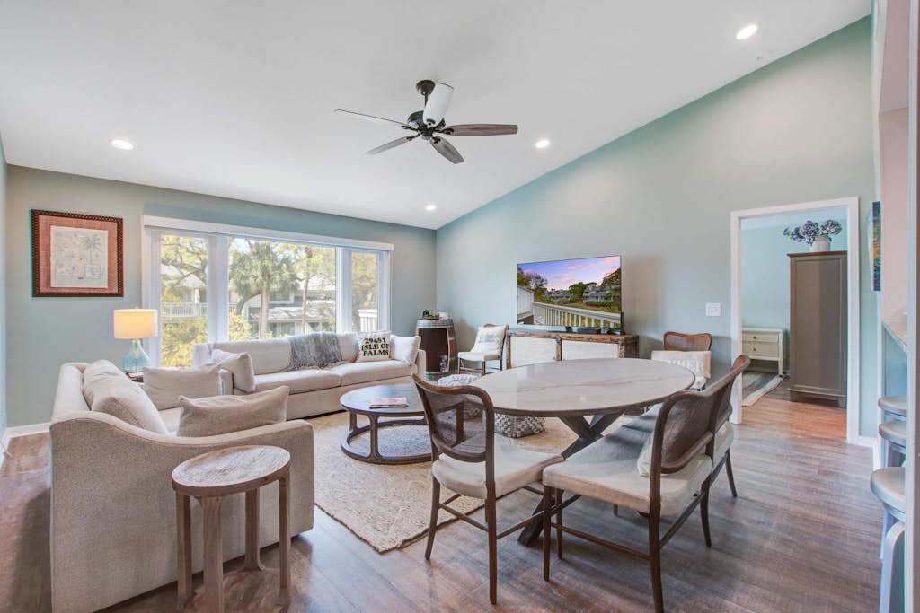 Welcome to this beautifully updated two-bedroom, two-bath Lagoon Villas townhome on Isle of Palms, an inviting coastal retreat that combines walkable convenience, relaxed Lowcountry style, and easy access to the region’s most celebrated annual events. Just a short walk from the beach, this light-filled villa is perfectly suited for families, golfers, outdoor enthusiasts, and girlfriends’ getaways seeking both comfort and location. Inside, the home feels bright, open, and effortlessly coastal. Clean lines, vaulted ceilings, and abundant natural light define the great room, creating a welcoming space to unwind after a day on the sand or exploring the Charleston area. The updated kitchen blends style and function with new cabinetry, granite countertops, stainless steel appliances, a smooth-top range, and a built-in microwave - ideal for casual breakfasts, beach-day snacks, or relaxed dinners at home. The thoughtfully designed split-bedroom floor plan offers both privacy and flexibility for groups. One bedroom features a king bed and a private ensuite bath with granite vanity, while the second bedroom offers two queen beds with its own ensuite bath, also finished with granite. Each bedroom opens to its own private deck with peaceful lagoon views, inviting you to start the morning with coffee outdoors or wind down as the sun sets over the water. Additional front and rear deck spaces extend the living area outdoors, providing multiple places to relax and enjoy the coastal setting. With newer HVAC systems, the home offers comfortable year-round stays in every season. Beyond the villa, Lagoon Villas delivers resort-style convenience. Guests enjoy access to a beautiful community pool and sun deck and are just steps from the tennis center, fitness facilities, dining options, and beach access. Golf courses, scenic bike paths, water sports, fishing, and kayaking are all nearby, making this an ideal home base for an active Isle of Palms vacation. The location also makes this home especially appealing for guests visiting the Charleston area for its renowned annual events. Each year, travelers return for Spoleto Festival USA, Charleston Wine + Food, and the iconic Cooper River Bridge Run, while spring and fall bring golfers to the region for tournaments and coastal golf getaways, including easy access to RBC Heritage. Summer beach season, fall festivals, and mild winter escapes keep Isle of Palms a favorite destination year-round. Whether you’re planning a family beach vacation, a golf or tennis escape, or a relaxed coastal getaway with friends, this Lagoon Villas retreat offers the perfect blend of comfort, walkability, and island charm - just steps from the beach and moments from everything that makes the Charleston coast unforgettable. Things to Know Parking:This villa is located within a gated HOA community at Wild Dunes. Upon your first arrival, please stop at the gate and provide the guard with your name and destination to gain entry. Parking is available in the community lot on a first-come, first-served basis. Two parking passes will be waiting for you in the kitchen upon arrival. Once you have the passes, place them in your vehicle(s) for the duration of your stay. These passes provide easy re-entry through the gate and are required to park in the community to avoid towing. - The villa is located on the second floor and is accessed by stairs. - The villa borders a peaceful lagoon, with beach access just two blocks away. - Exterior security cameras are present in common areas of the complex for guest safety. - Gated trash and recycling bins are located to the left of the unit. Collection takes place on Tuesdays and Thursdays.