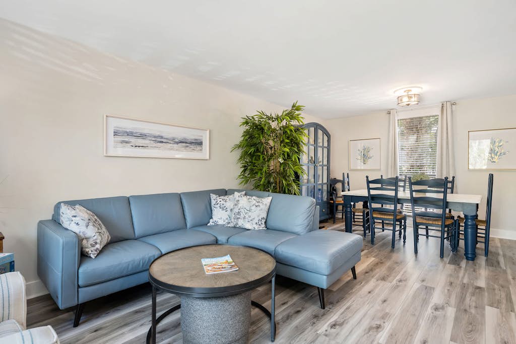 Welcome to your Hilton Head retreat—a comfortable ground-floor condo set in the tropical surroundings of Seascape Villas. With easy access and no stairs, this home is ideal for a stress-free beach vacation. The open layout provides a welcoming space to relax after a day in the sun, complete with a fully equipped kitchen, dining area, and living space with TV and WiFi. Bedroom Configuration Primary bedroom with king bed Second bedroom with two queen beds HOME FEATURES Ground-floor unit for easy access Fully equipped kitchen Coffee maker In-unit washer and dryer Wi-Fi TV for entertainment Step outside to a landscaped walkway surrounded by palm trees and greenery, offering a peaceful tropical setting right outside your door. COMMUNITY HIGHLIGHTS Short 3–5 minute walk to the beach Private beach path across the street Beach cabana with restrooms and outdoor showers Two community pools Scenic walking paths throughout the property Located in a desirable area of Hilton Head, you’ll be close to beaches, biking paths, dining, and local attractions while enjoying the quiet charm of the Seascape community.